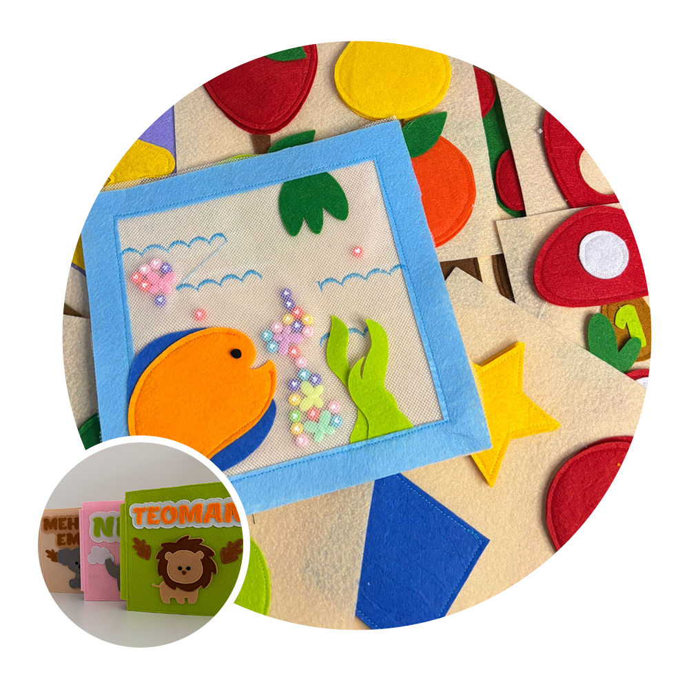 Her bir ürün, çocukların gelişim evreleri dikkate alınarak özenle tasarlanmış, eğlenerek öğrenmeyi merkeze alan el emeği setlerdir.